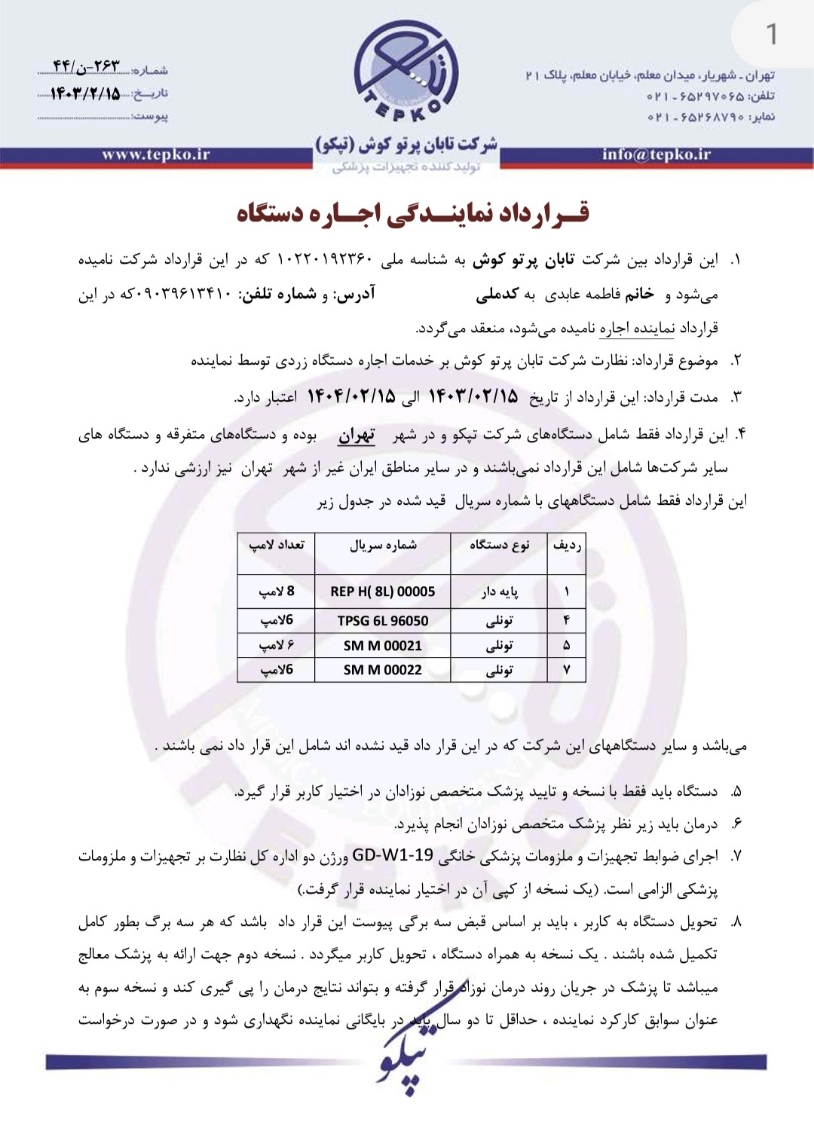 قرارداد نمایندگی اجاره دستگاه