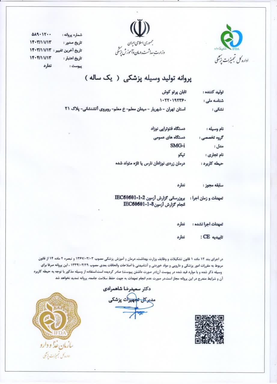 والدین گرامی جهت اجاره دستگاه فتوتراپی نوزاد، حتما توجه بفرمایید به اینکه دستگاهی که برای درمان زردی نوزاد خود تهیه میکنید، حتما برچسب کالیبره با تاریخ اعتبار لامپ ها (توسط سازنده دستگاه) ، روی دستگاه نصب شده باشد تا دستگاه اثر درمانی صد در صد داشته باشد.